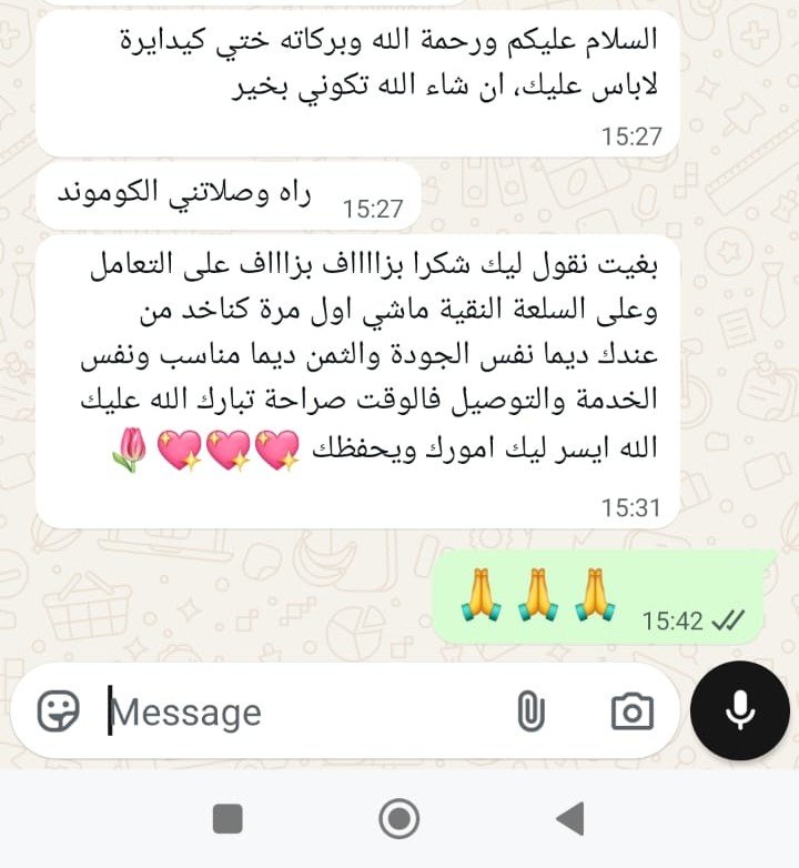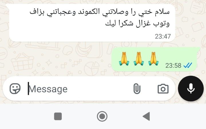 لك… حيث تستاهلي الأحسن منتجات مختارة بعناية جودة، أناقة، وتوصيل حتى لباب دارك. اطلبي دابا كيمونو تقليدي بلدي من قماش الموبرة الفاخر المرجوا ملإ الاستمارة اسفله المقاس S M L XL XXL اللون أحمر (rouge) أزرق (bleu) بني (marron) أبيض مكسور (blanc cassé) أسود (noir) أبيض (blanc) وردي (rose) تأكيد الطلب الكمية جد محدودة الدفع عند الاستلام في جميع المدن كيمونو تقليدي بلدي من قماش الموبرة الفاخر كيمونو تقليدي بلدي من قماش الموبرة الفاخر بتصميم محتشم وألوان متنوعة تناسب جميع الأذواق. مثالي للتنسيق مع القفطان أو الجينز لإطلالة مغربية عصرية وأنيقة. ماذا يقول عملاؤنا؟ « الأناقة ليست فقط في ما ترتدين، بل في كيف تُحِبين نفسك وتعطي لها حقّها منالعناية والاهتمام. » - كوكو شانيل (Coco Chanel) حيت تستاهلي قطع محدودة، تصاميم مختارة بعناية. انضموا إلينا واكتشفوا جديدنا. حيت تستاهلي🤍 مرحبا بكم 🤍
